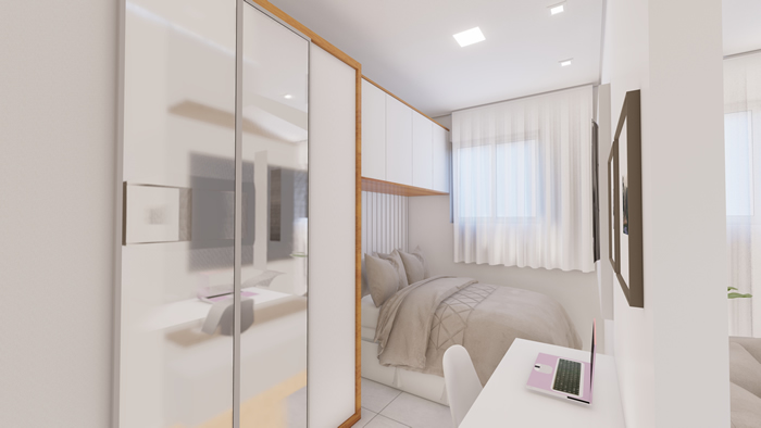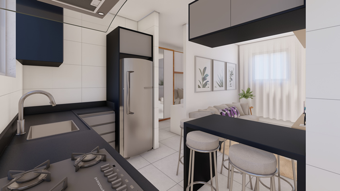 Todas as unidades possuem 1 dormitório e 1 vaga para moto, com excelente acabamento e ambientes super iluminados e ventilados.